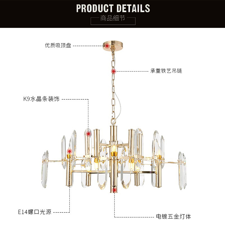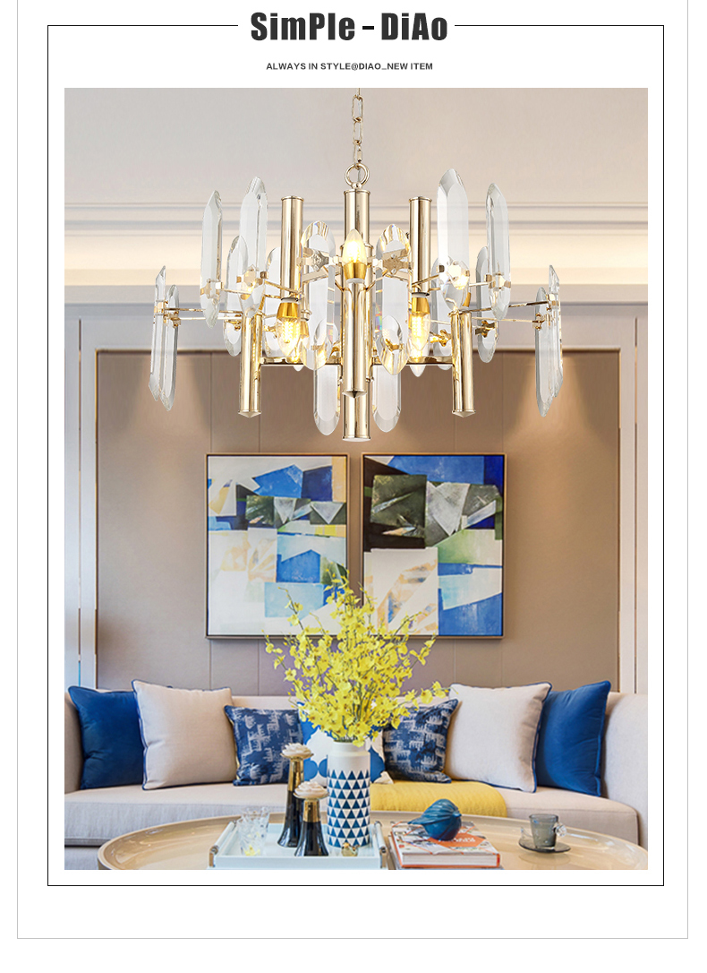 美式吊燈客廳創(chuàng)意金色家用飯廳北歐式后現(xiàn)代簡約餐廳臥室水晶燈具