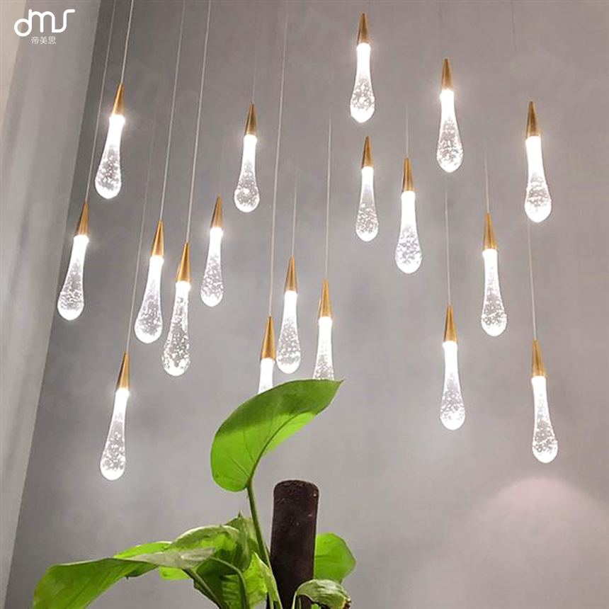 水滴吊燈酒店大堂復式樓樓梯間別墅豪宅長吊燈時尚吊燈樓梯水滴燈