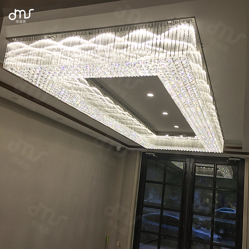 酒店會(huì)所KTV別墅豪宅非標(biāo)吸頂方形水晶燈售樓處沙盤大堂水晶吊燈