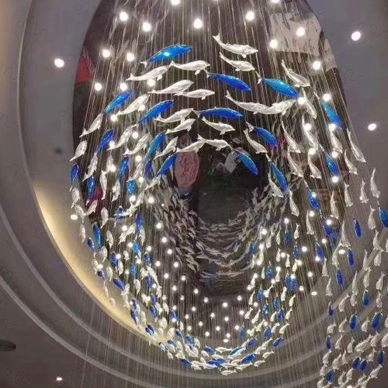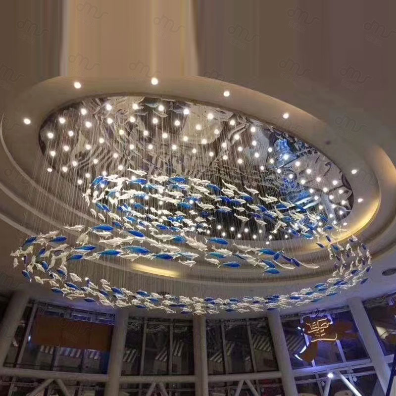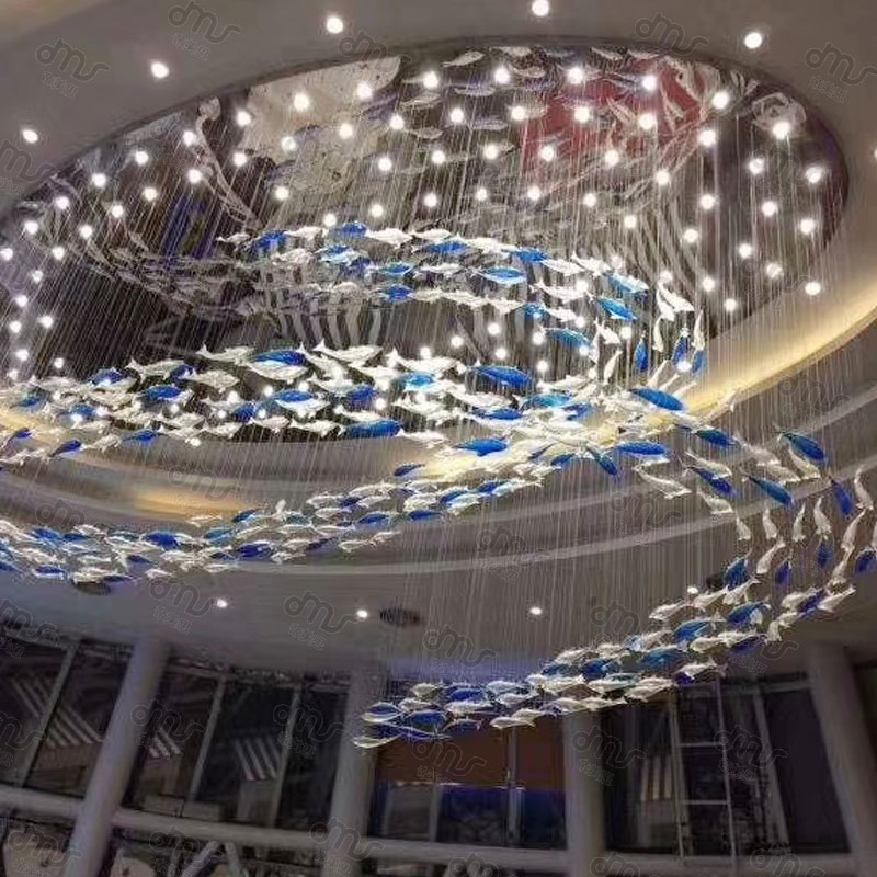 創(chuàng)意琉璃橢圓形小魚大型吸頂?shù)鯚?/div>