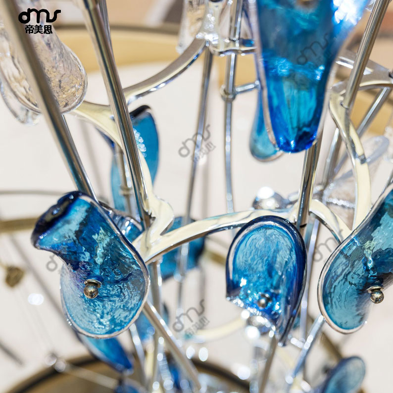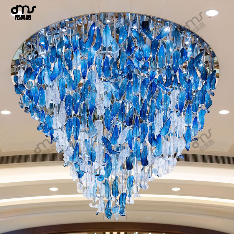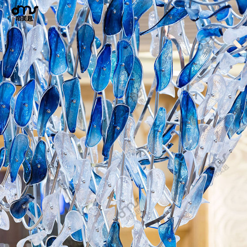 個(gè)性簡約藍(lán)色手工琉璃玻璃葉片大型吸頂?shù)鯚?/div>