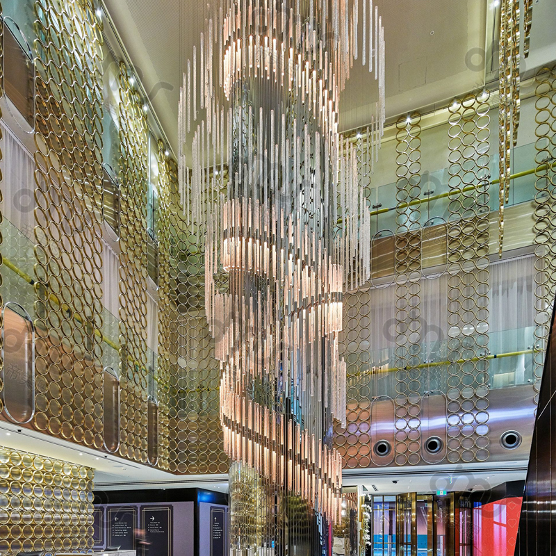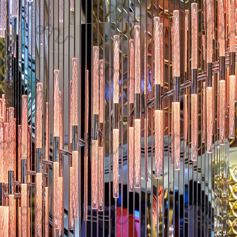 大型會所酒店水晶玻璃棒重柱裝飾燈具