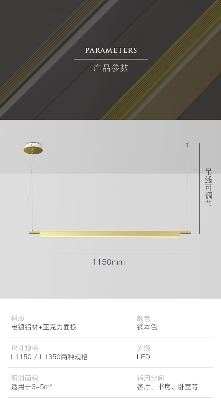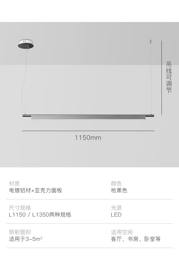 1.2米,1.5米,1.8米三種長(zhǎng)度的吊燈